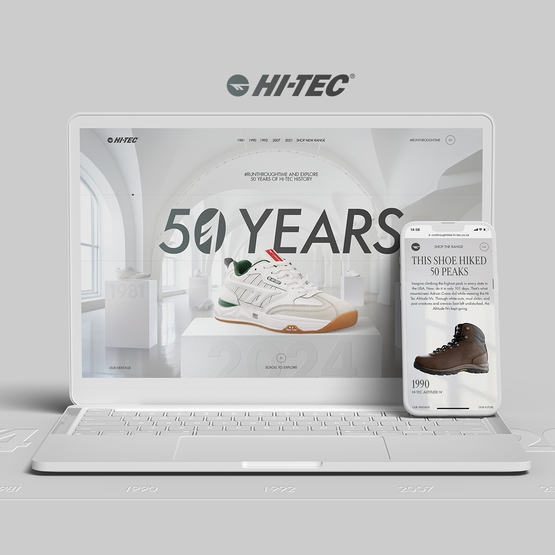 To celebrate HI-TEC’s 50th anniversary, and the launch of the new “ORIGINAL SINCE” range, the “RUN THROUGH TIME” campaign took users on a journey through the brand’s iconic past and into their innovative future.